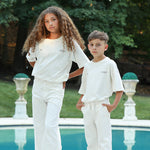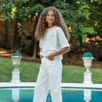 Clean, confident, and consciously made. These cropped wide leg jeans are crafted from 100% GOTS-certified organic cotton, offering a structured yet breathable feel with a modern, easygoing fit. The adjustable waistband ensures comfort that grows with your child, while the wide-leg silhouette adds just the right touch of standout style.
