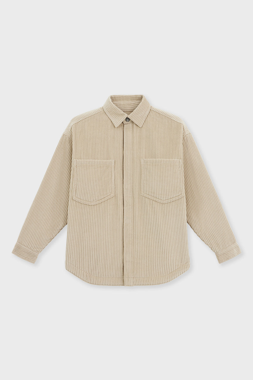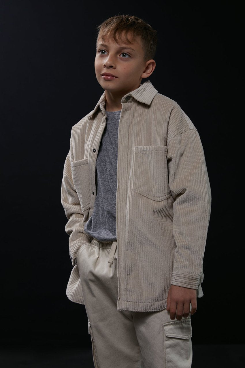 Oversized Fit Quilted Corduroy Shirt. Made from soft, durable 100% organic cotton corduroy fabric, this shirt ensures ultimate comfort. Designed with a relaxed, oversized fit that kids absolutely love, it's perfect for everyday wear.