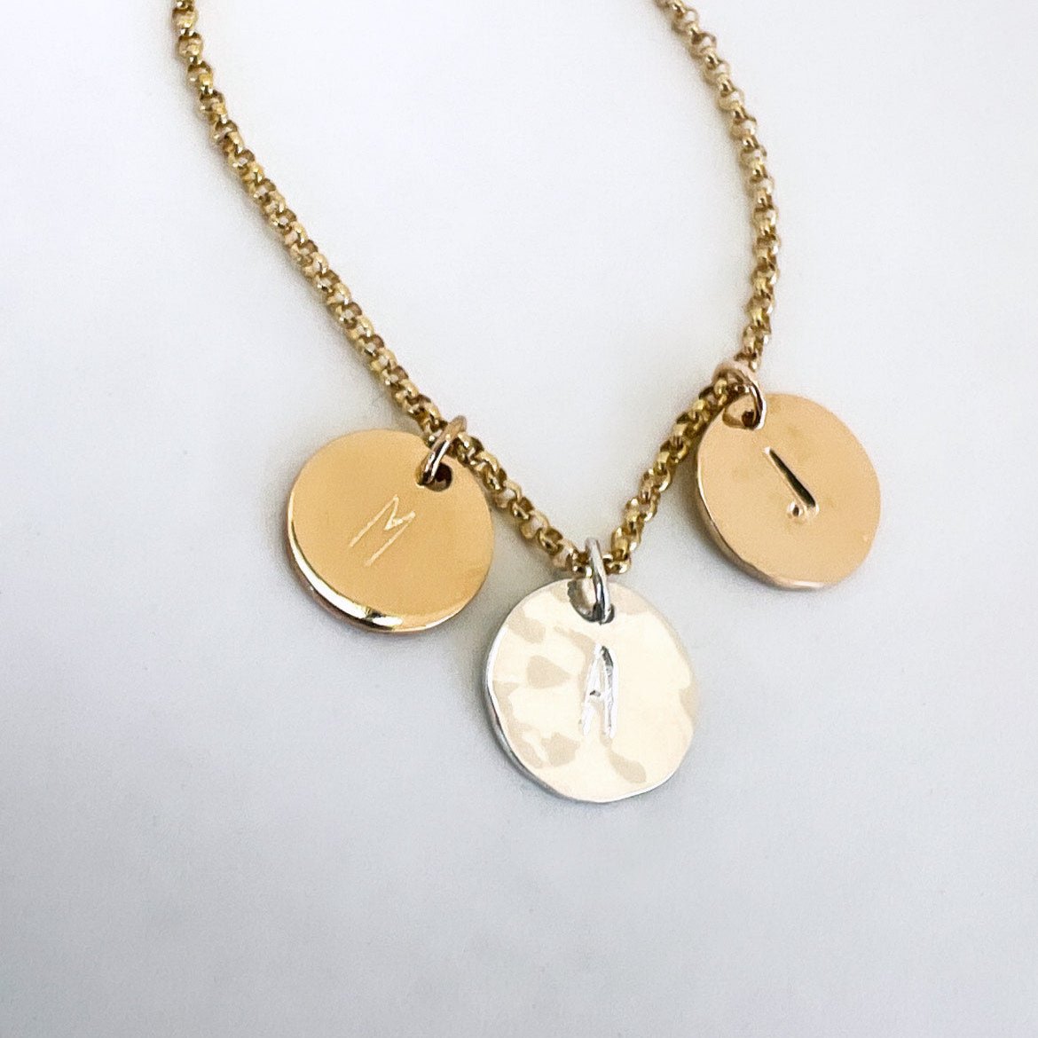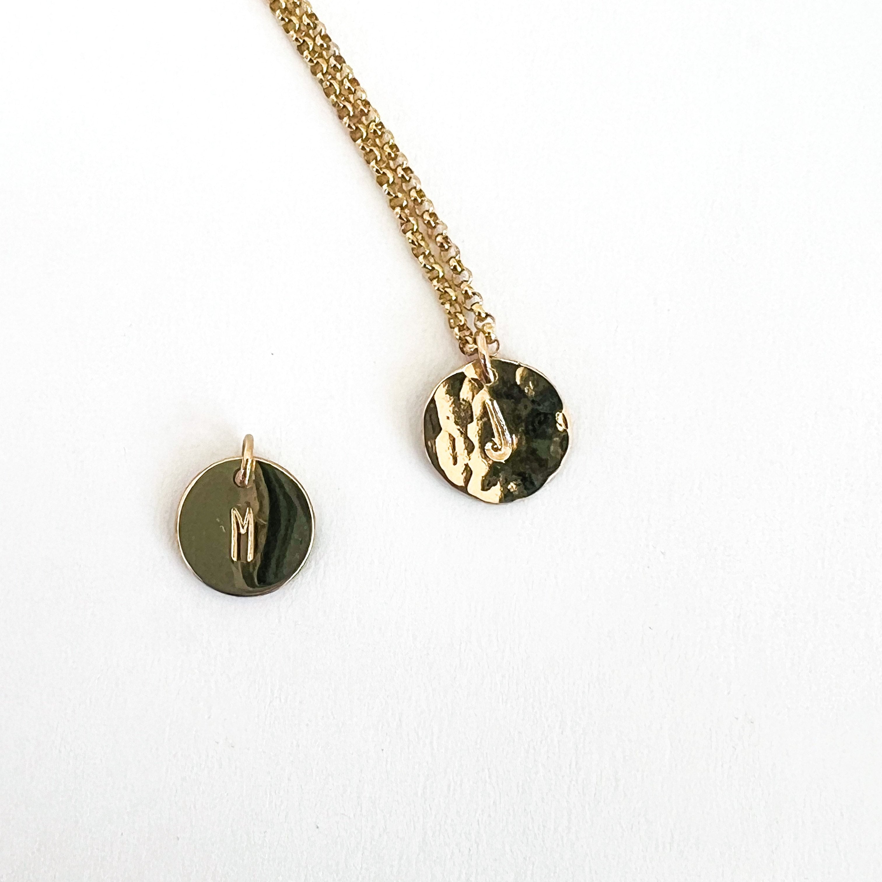 This piece showcases a delicate 1/2” round pendant that can be personalized with an initial of your choice, making it a beautiful layering staple. Crafted from 14K yellow Gold Fill, this investment is designed to last for years. Add it to your personal collection or gift it as a heartfelt present. Add as many charms and I rials as you’d like.