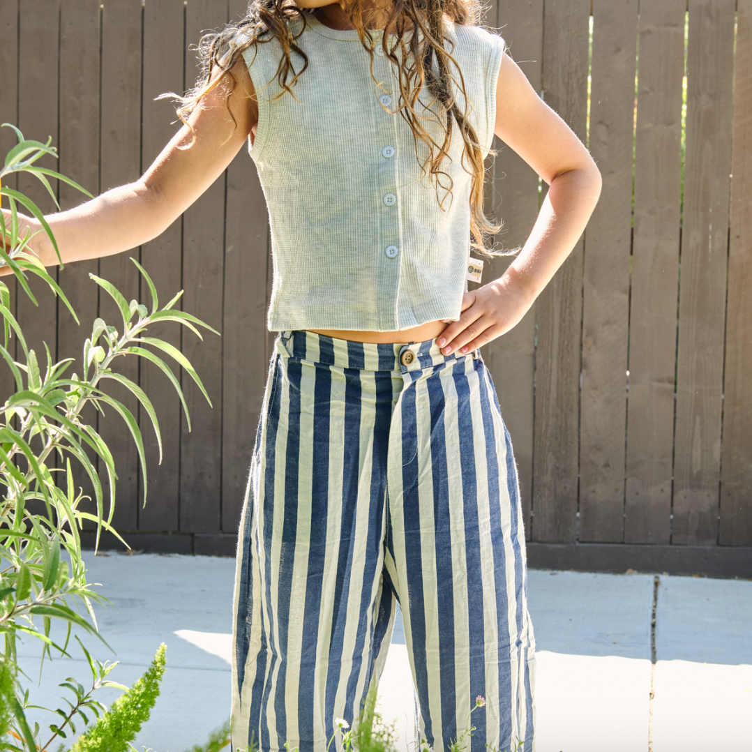 We're in love with these cotton wide striped straight leg pants. They're such a fun statement piece - wear them with a t-shirt and sandals on a hot day or sweater and boots for a cooler night.