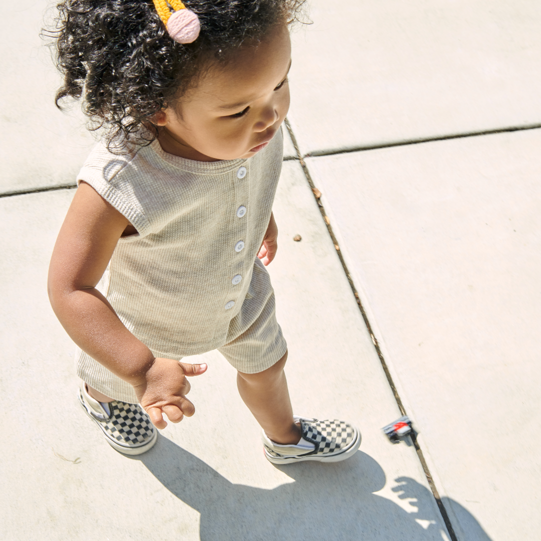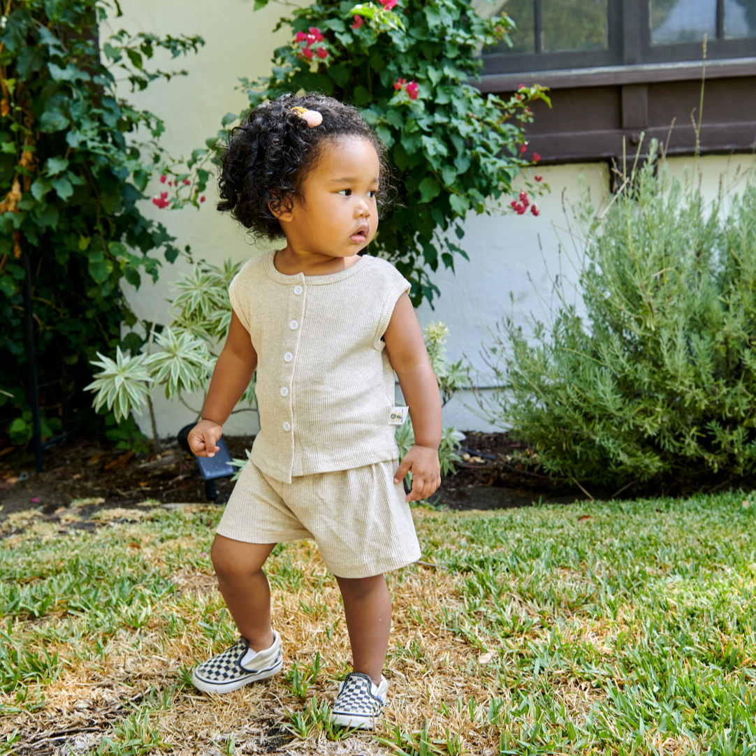 Adorable cotton blend vest and short set! Sport the top with buttons in the front or turn it around for a solid look! Easy worn together or as separates!!