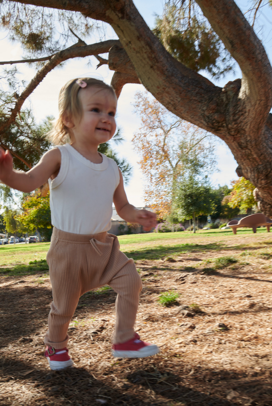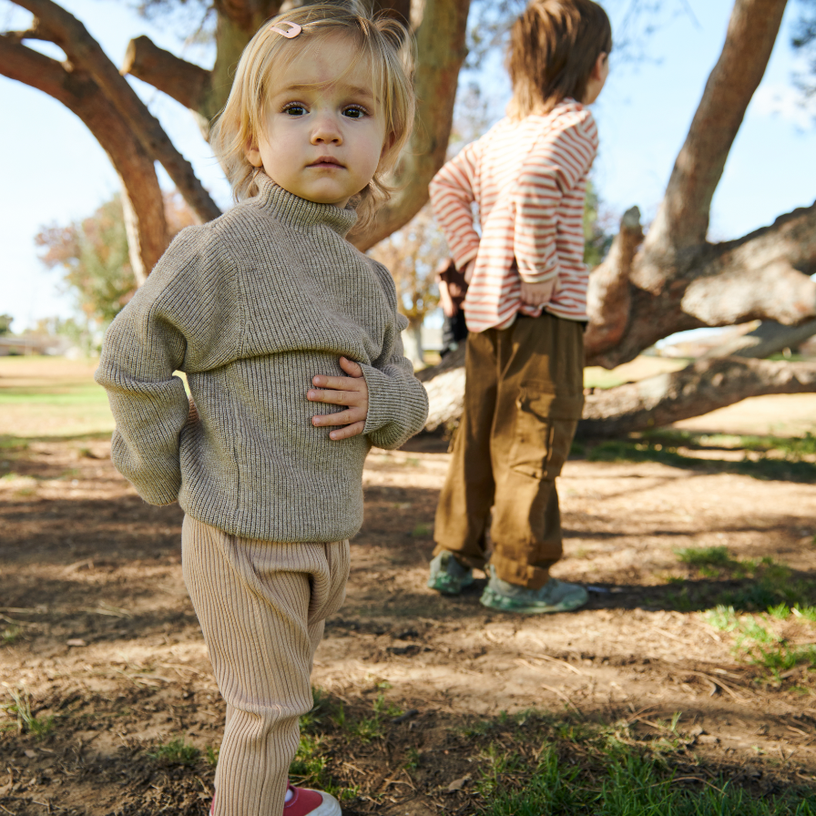 Featuring a ribbed texture and elastic waist, these leggings are a go to for babies and toddlers looking for comfort. Wear with a t-shirt or layer up for a cooler day.