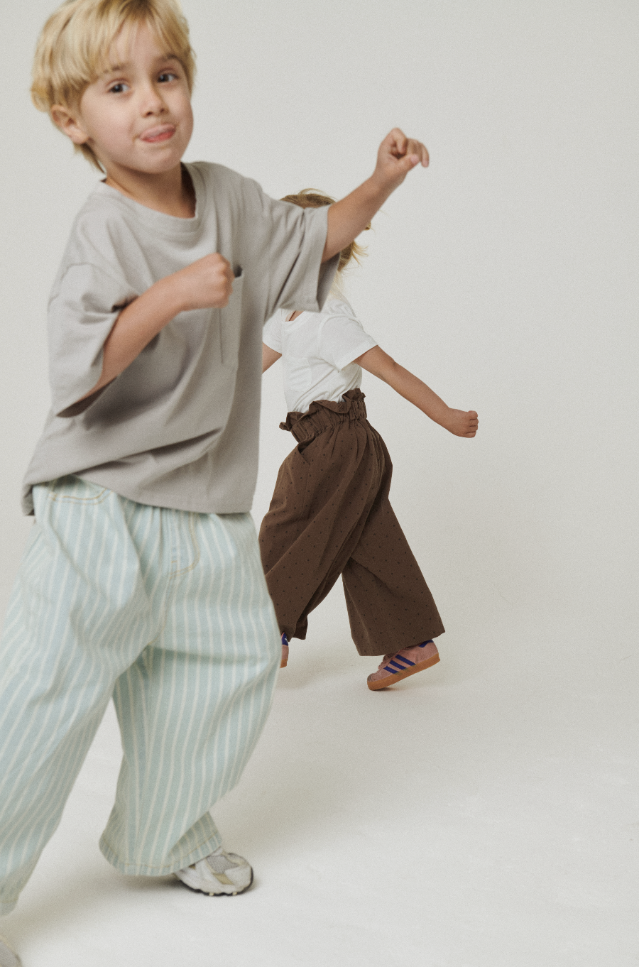 The coolest denim featuring a subtle vertical stripe and an elastic waistband with -always needed- front pockets. A comfortable, relaxed shape that pairs effortlessly with tees, sweaters, or lightweight layers.