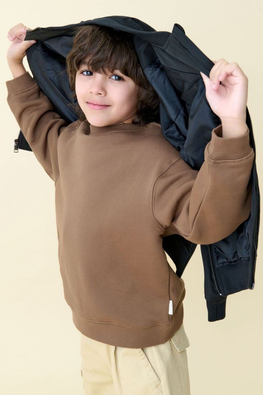 The everyday essential, upgraded. This relaxed fit crewneck sweatshirt is made from 100% premium organic cotton fleece for a soft, breathable feel that’s perfect for cooler days or cozy layering. With a roomy silhouette and natural stretch, it delivers comfort that moves with your child — from playtime to downtime.