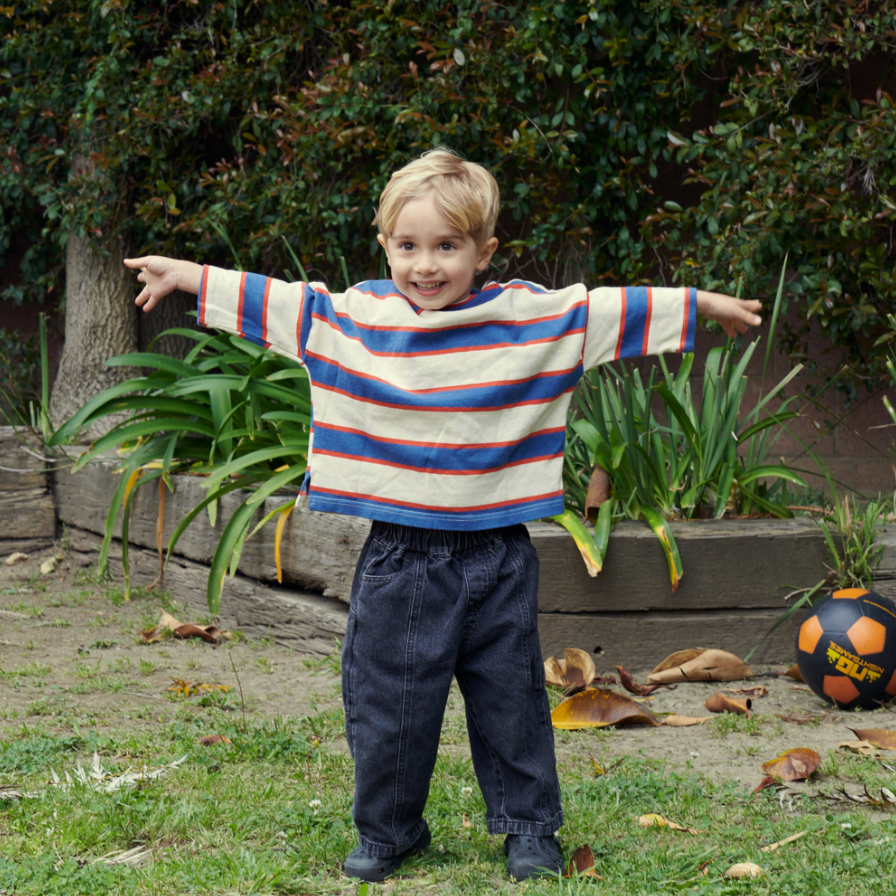 Tapered denim that works with everything - pair them with a t-shirt or bundle up for a winter day. Keep your kids comfy with an elastic waistband and loose fit.