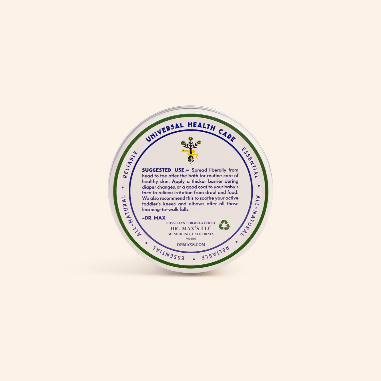 Spread liberally from head to toe after the bath for routine care of healthy skin. Apply a thicker barrier during diaper changes, or a good coat to your baby’s face to relieve irritation from drool and food. Even use it on the scalp to improve cradle cap! We also recommend this to soothe your active toddler’s knees and elbows after all those learning-to-walk falls.