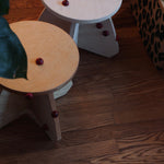 Each unit comes with 7  hand painted wooden ladybugs and self adhesive stickers for children to enjoy sticking the ladybugs where they see fit on the stool. We recommend fixing the ladybugs with classic wood glue for children younger than 3, to avoid any choking hazard.