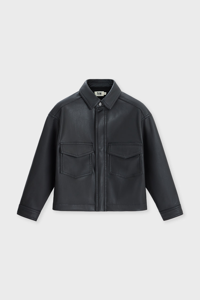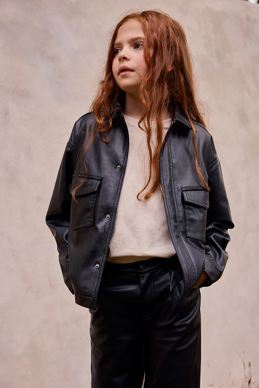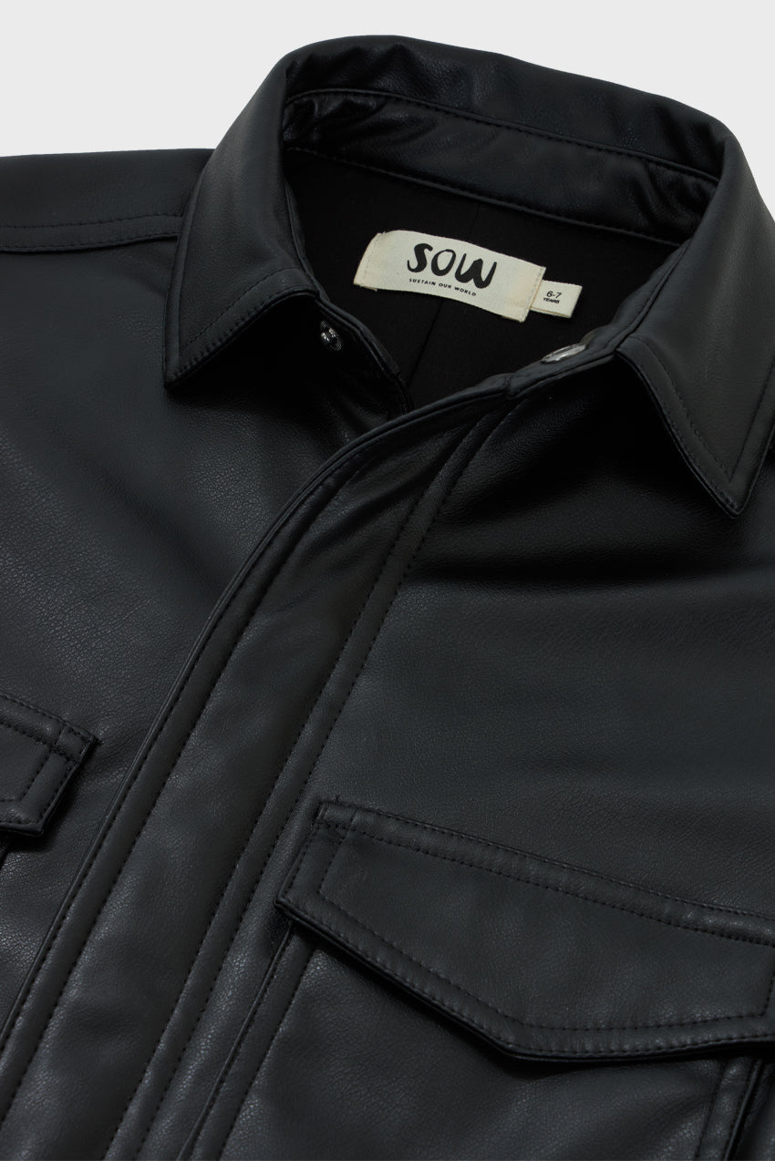 Bold, modern, and made to stand out. The SOW Kids Faux Leather Boxy Shirt is crafted from 100% recycled polyester, offering the sleek look of leather with an eco-conscious twist. Its cropped silhouette and structured fit deliver a contemporary vibe perfect for mixing, layering, and making a statement — sustainably.