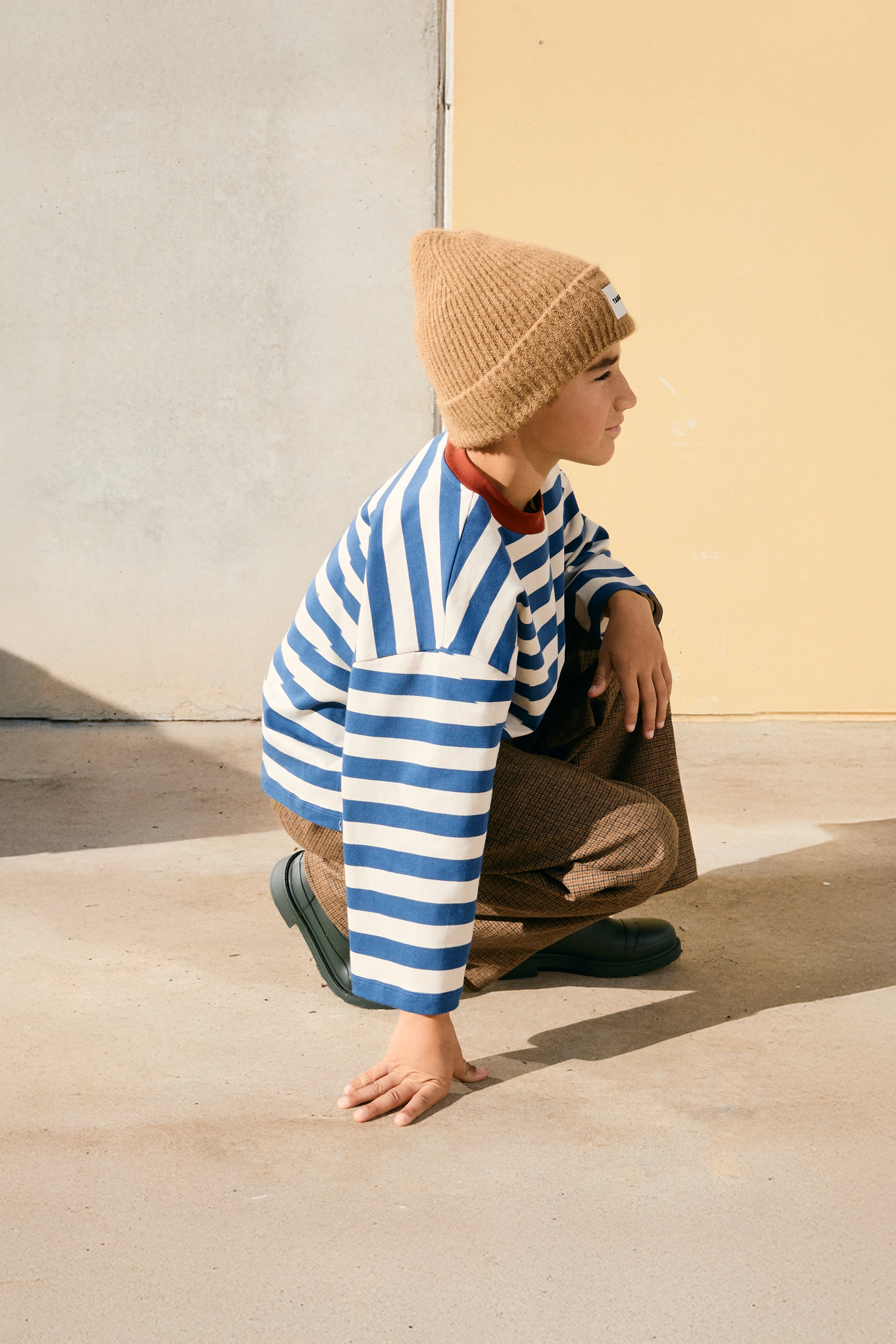 Long sleeve t-shirt made from BCI cotton jersey. Relaxed fit with dropped shoulders styled with contrast collar and Tangerine label stitched.