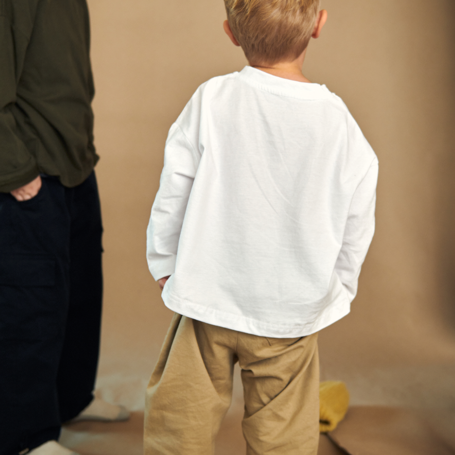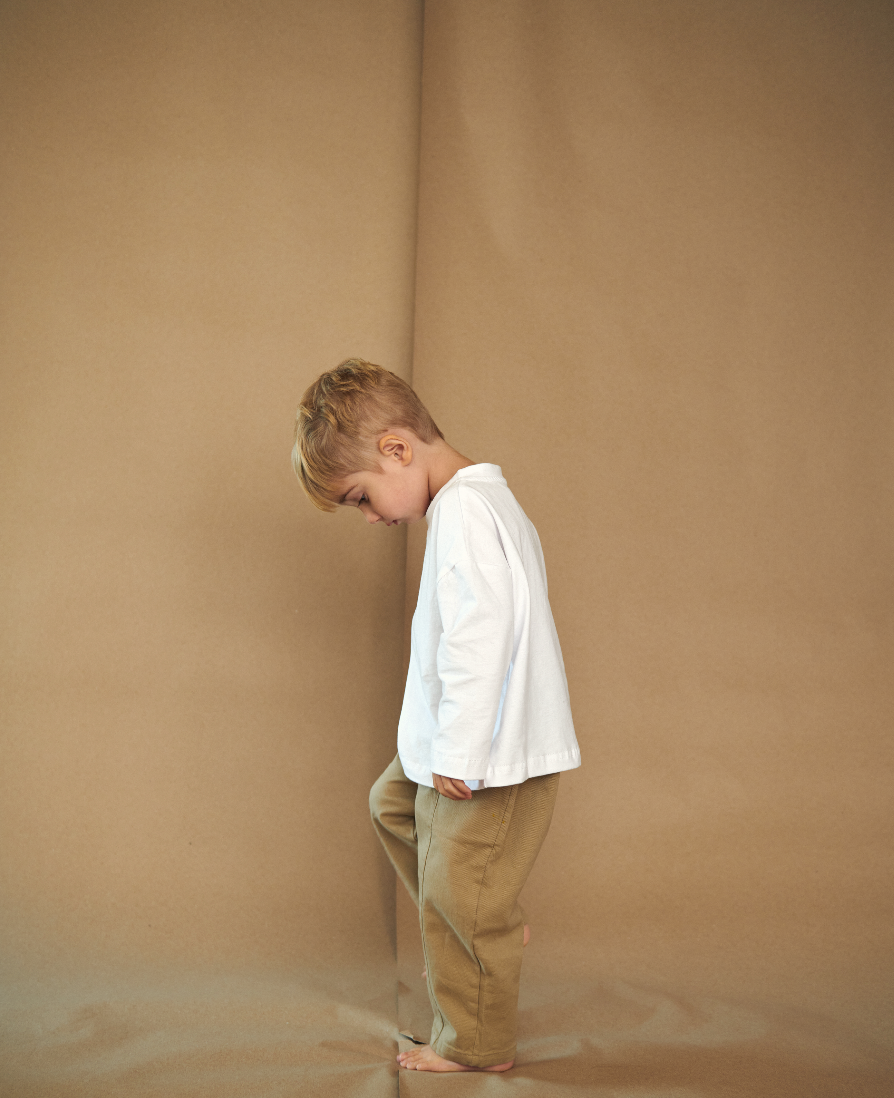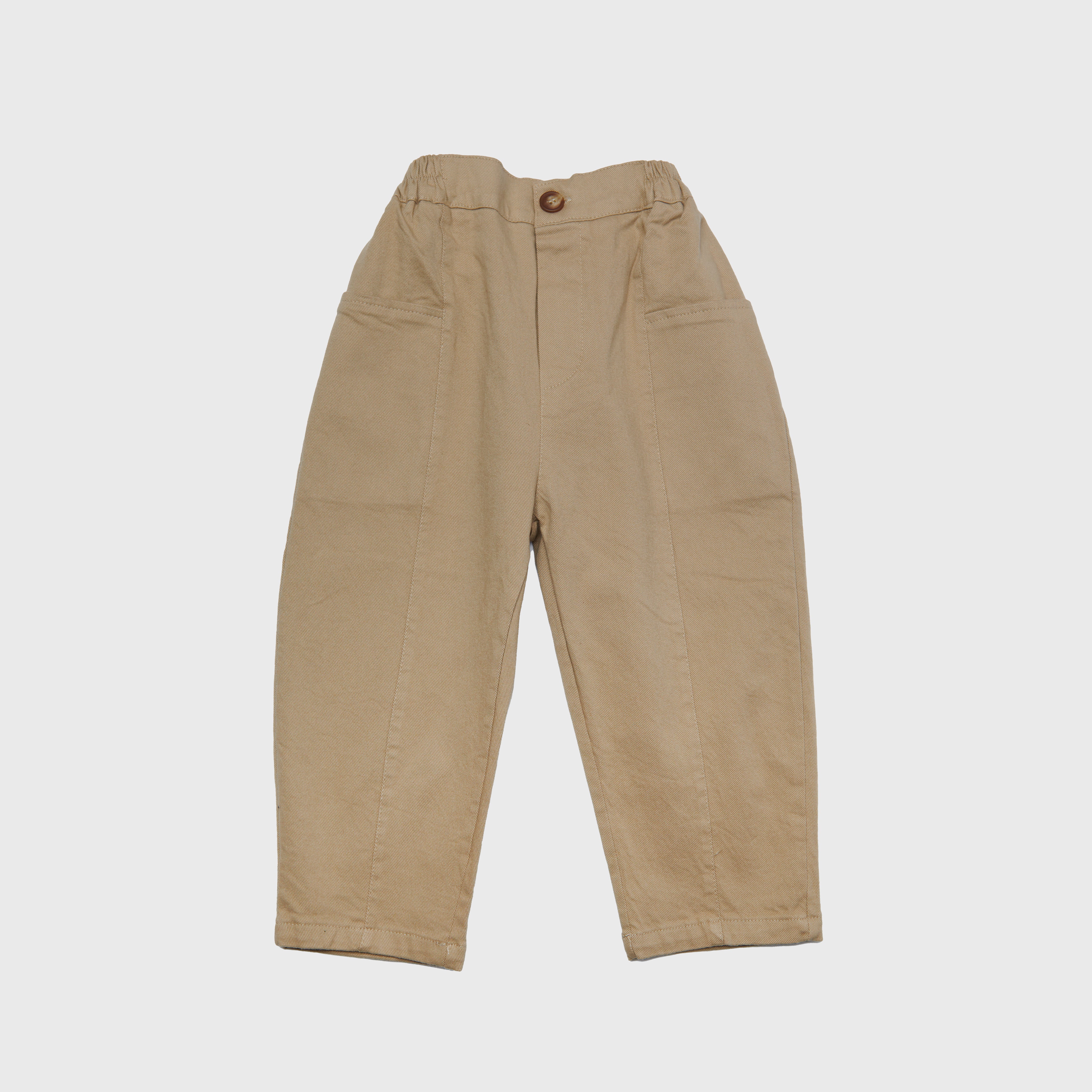 The perfect lightweight tapered twill pants featuring side slit pockets. They have a button closure, but elastic waistband allowing for extra room to grow.