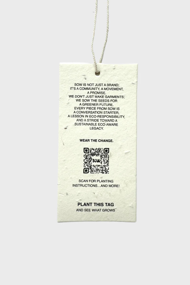 Each garment includes a plantable seed paper hangtag with wildflower seeds — a playful way to grow sustainability together.
