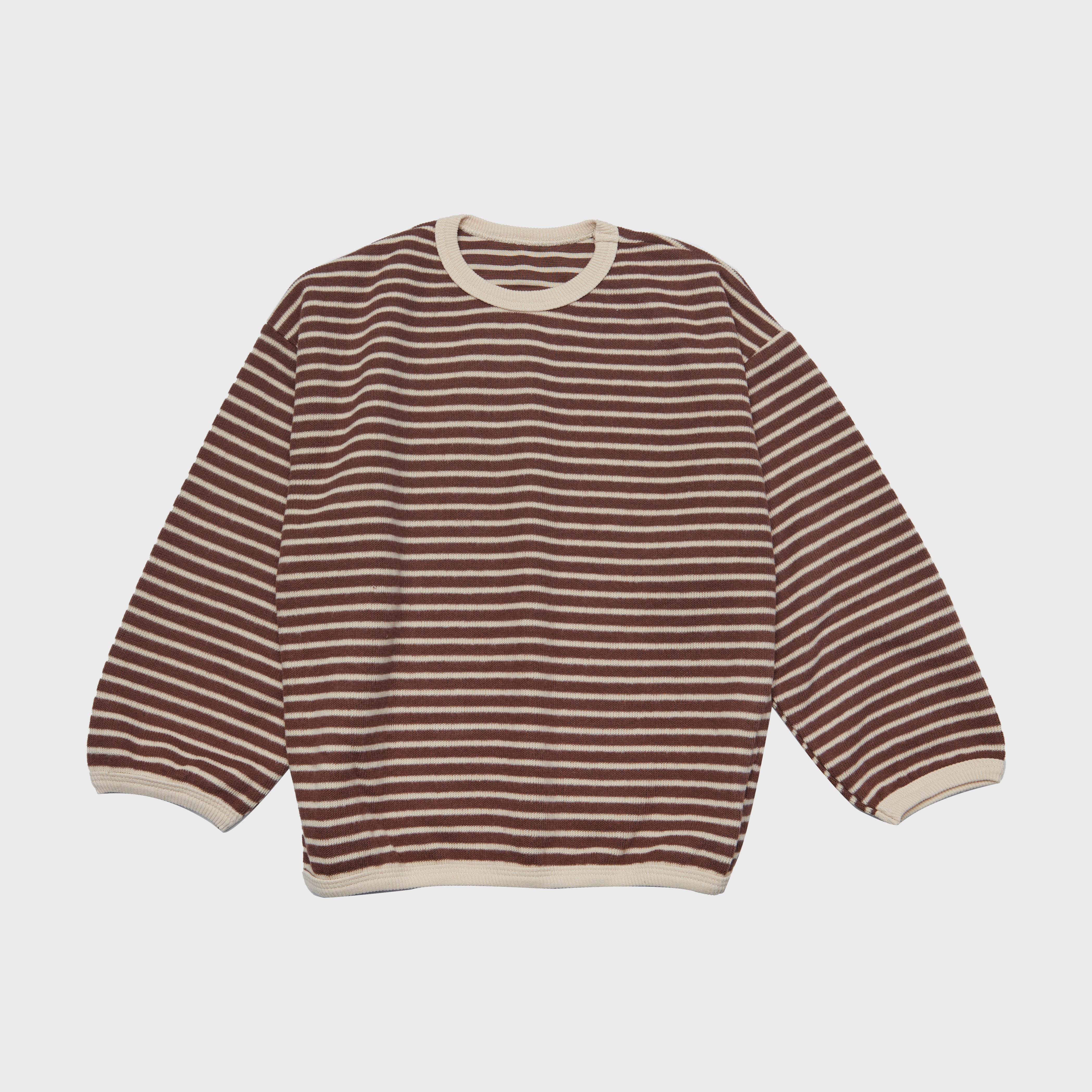 Cotton long sleeve stripe knit sweatshirt. Designed for a relaxed fit and pullover style for ease.