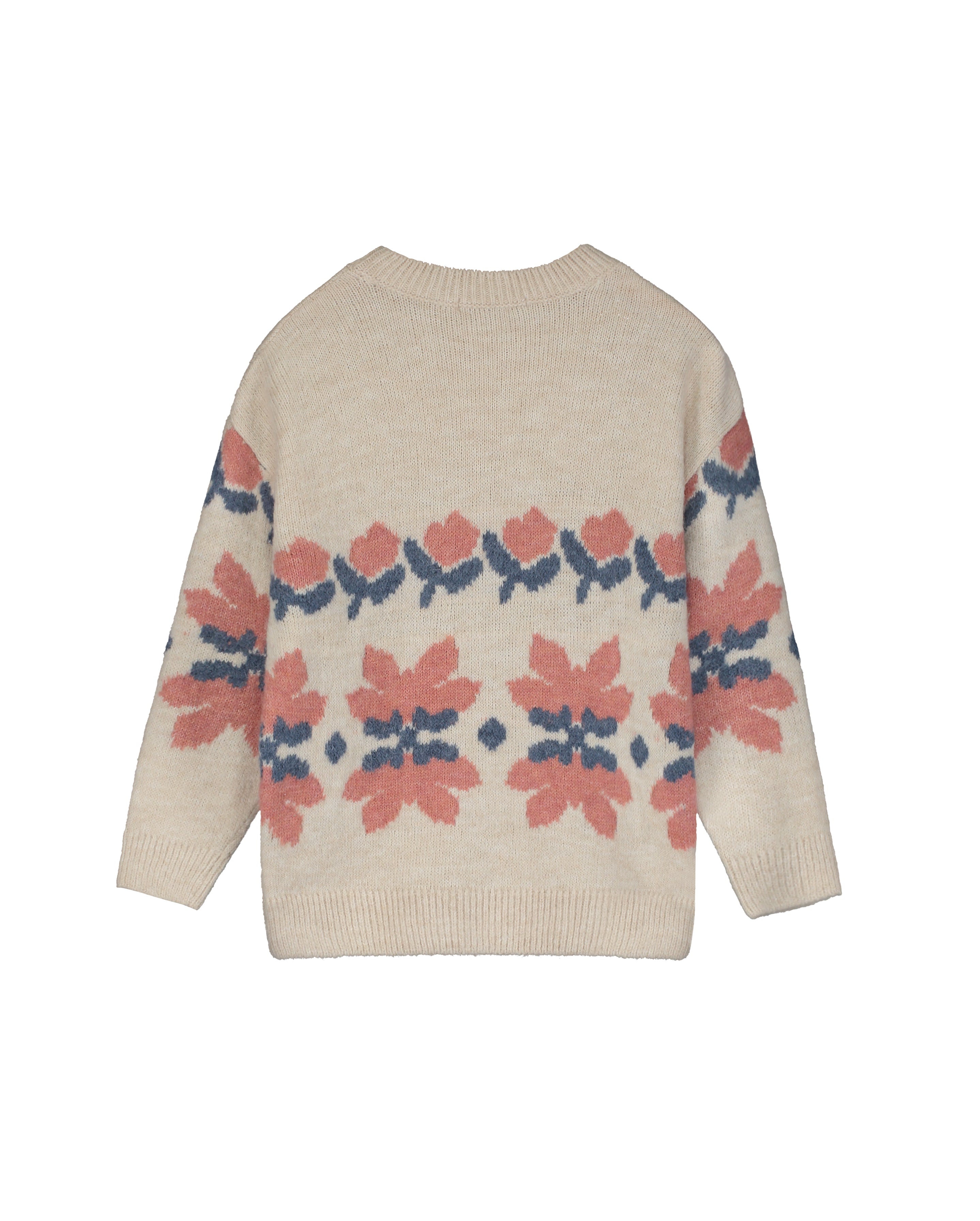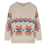 Relaxed fit knitted sweater crafted from wool blend. Embellished with flower motif. Long sleeves and crew neck.