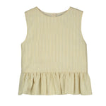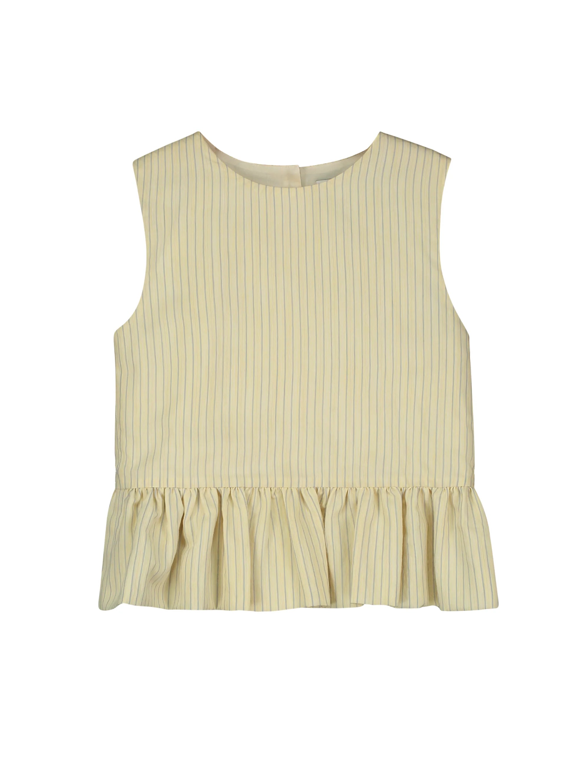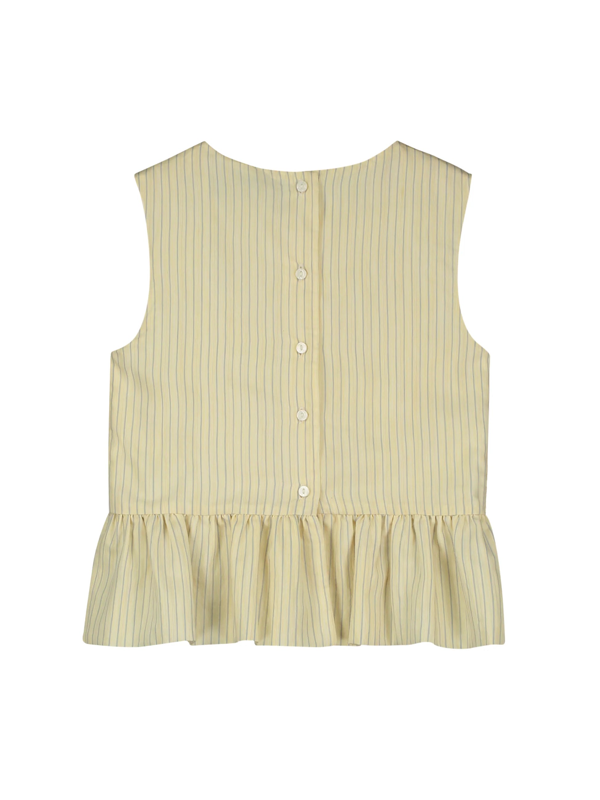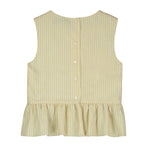 Striped peplum blouse made from voile styled with back button closure. Lined.