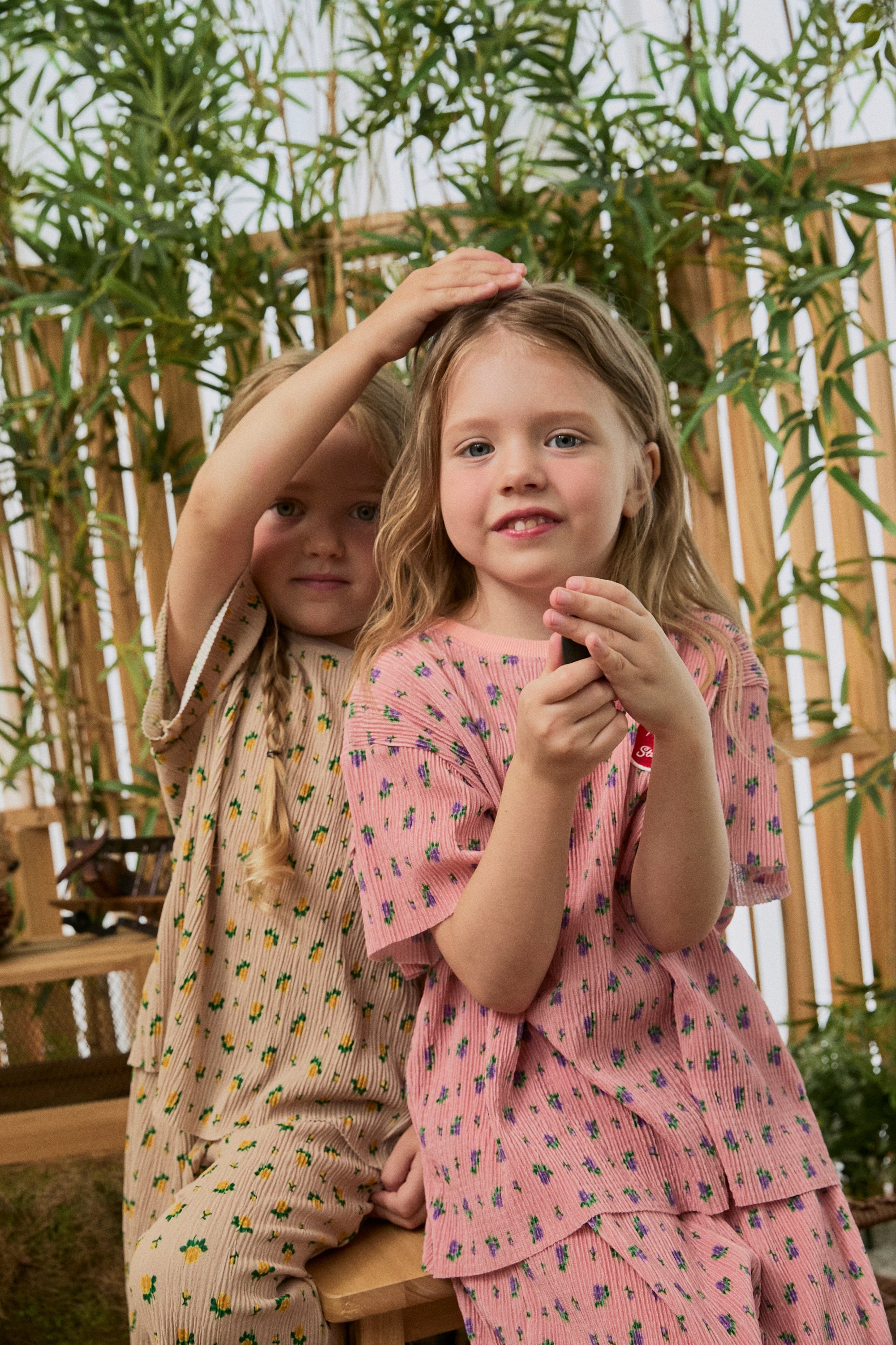 Our Floral Pleats Top features a lightweight pleated texture and a tiny all over floral print that feels fresh and timeless The relaxed silhouette drapes beautifully and moves with every step making it perfect for warm weather play Pair it with the matching pants or style it with denim shorts for an easy everyday look.