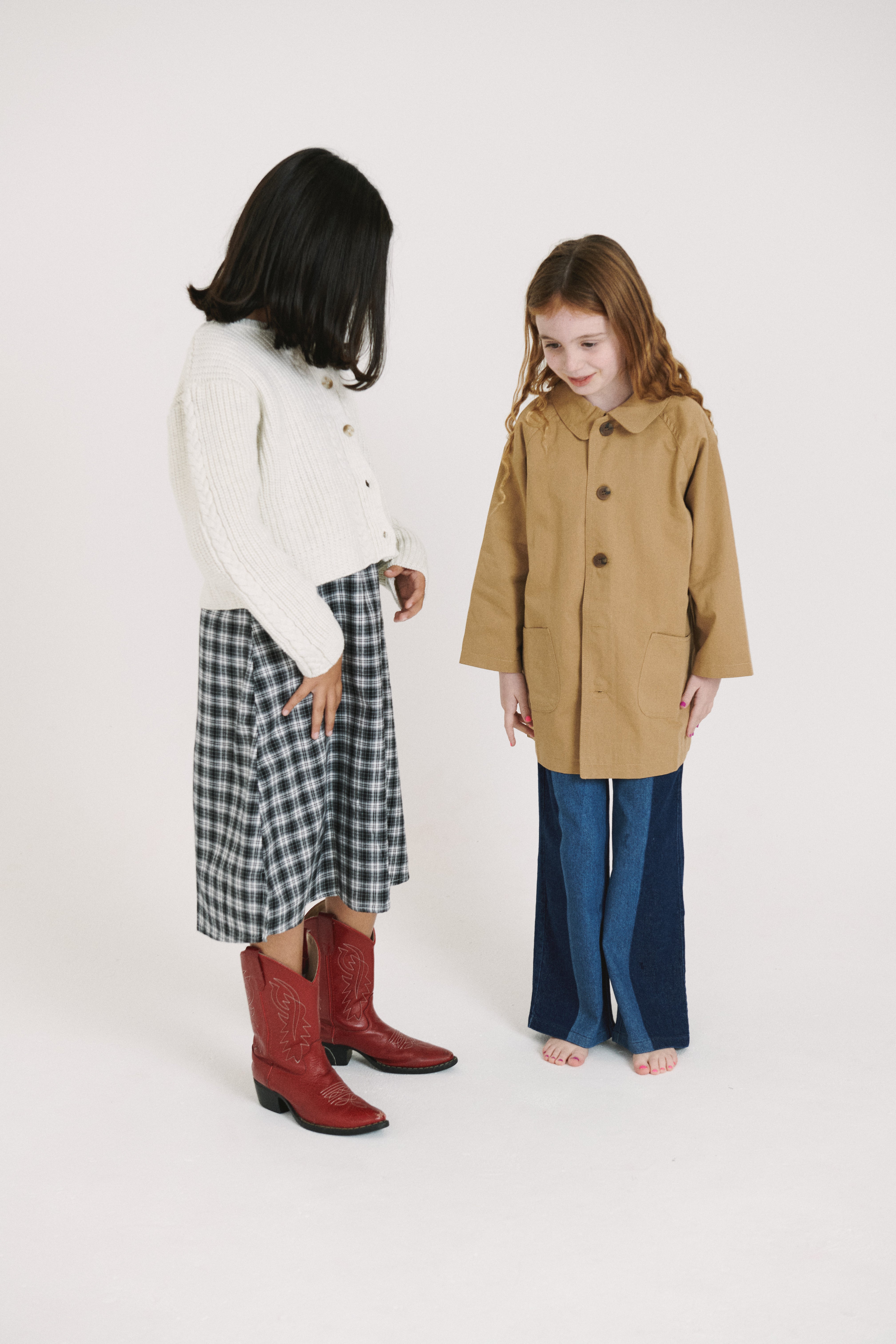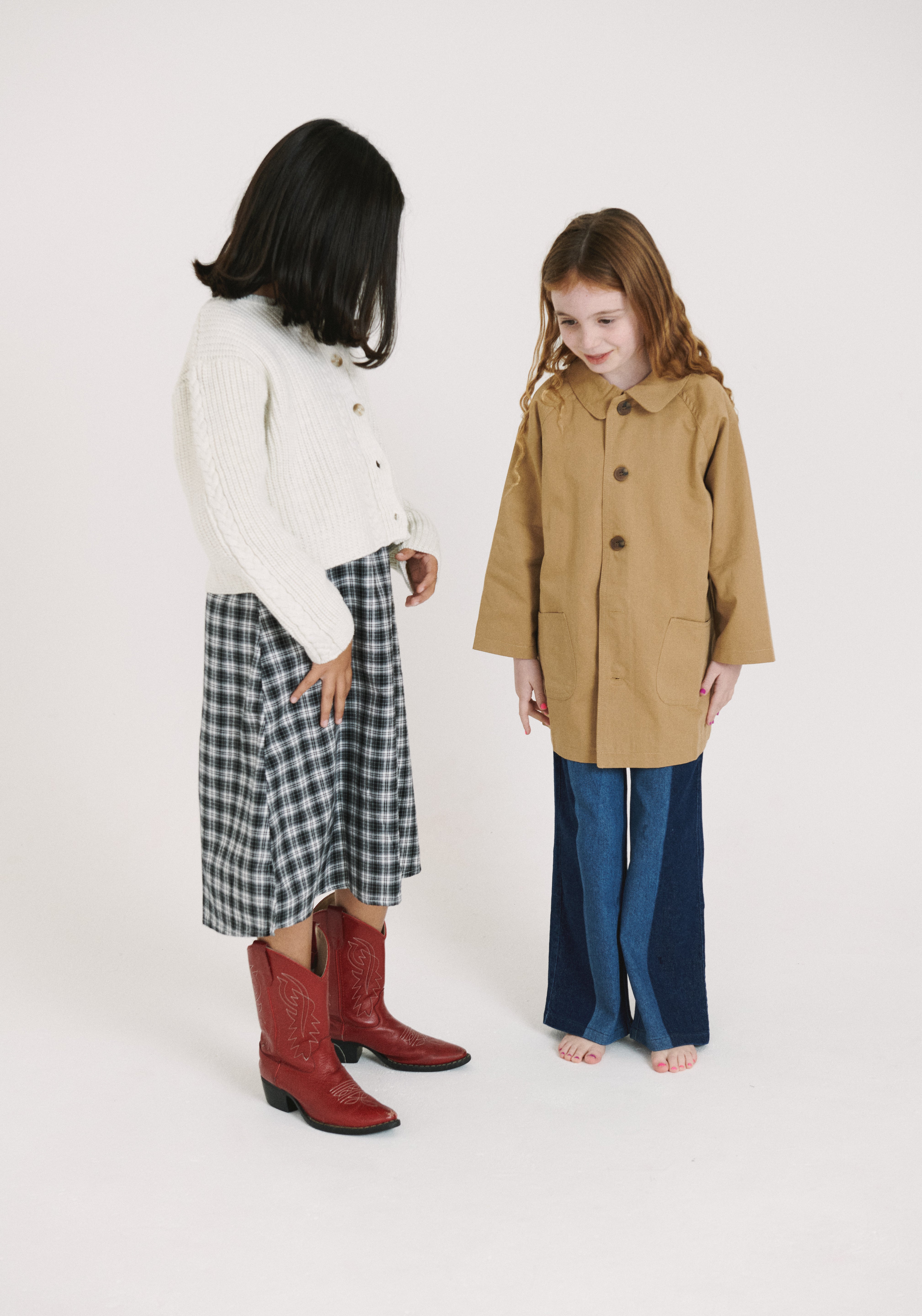 Classic trench coat with deep pockets and full button opening. Great layering piece for weather transitions.